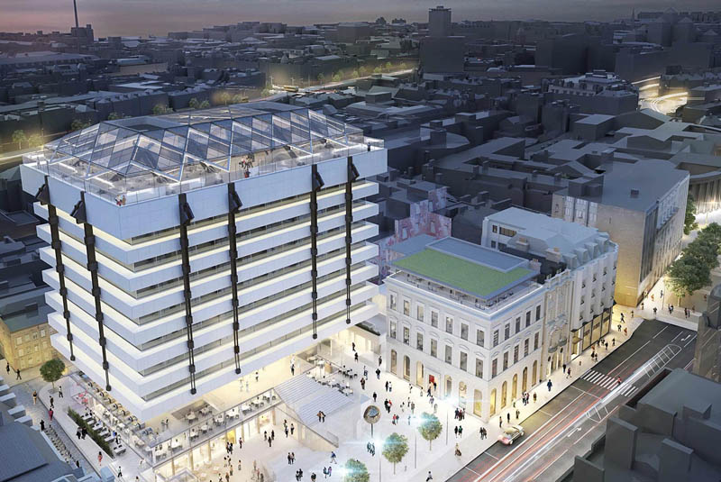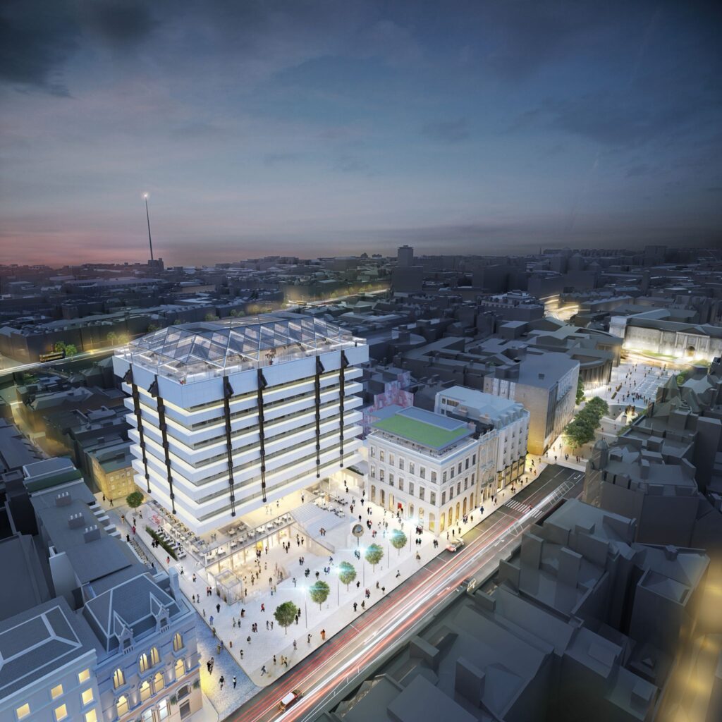 This popular pedestrian route now includes a two-tier town square, creates a new city centre destination and will be home to 100,000 sq.ft of Grade A offices, 53,000 sq. ft. of retail stores and restaurants, 15,500 sq.ft destination rooftop venue with a 360° viewing terrace around the entire perimeter.